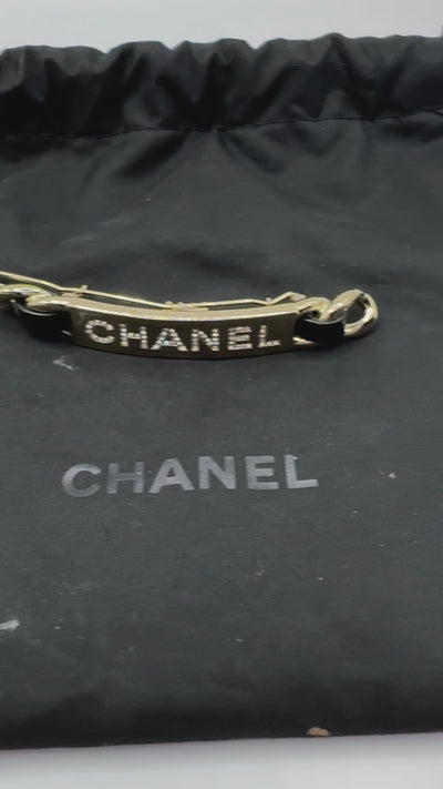Chanel vintage leather & silver barrette with crystal Chanel name
