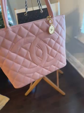 CHANEL BY KARL LAGERFELD PALE PINK CAVIAR LEATHER 2003 MEDALLION TOTE LOGO PURSE
