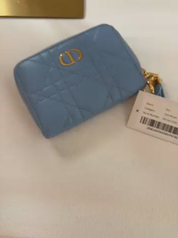 CHRISTIAN DIOR Grained Calfskin Supple Cannage Caro Compact Wallet Cloud Blue