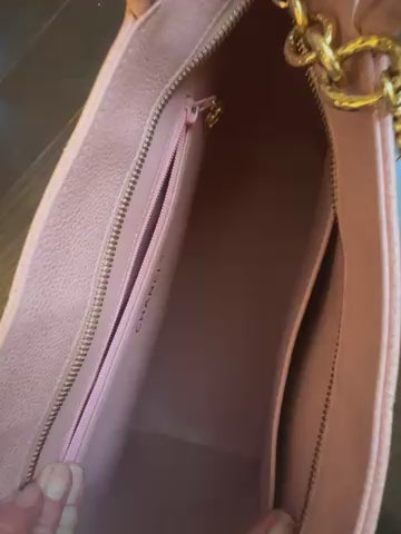 CHANEL BY KARL LAGERFELD PALE PINK CAVIAR LEATHER 2003 MEDALLION TOTE LOGO PURSE