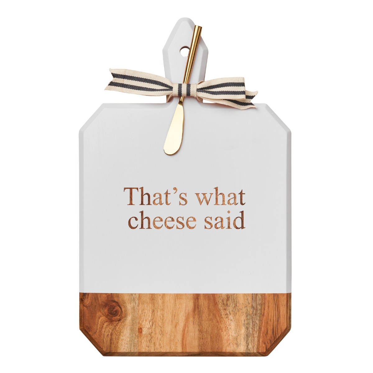 This premium acacia heirloom wood board is beautifully shaped with a food-safe colored finish on top.