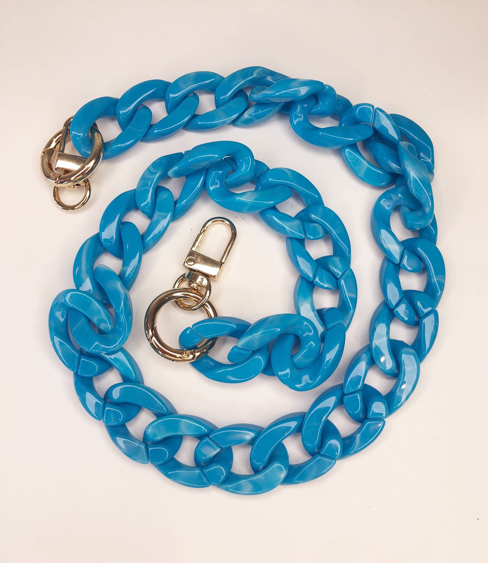 The Aiden Convertible Ashley Acrylic Bright Blue Strap from Oriana Lamarca Designs is a versatile addition to any bag. With a strap length of 24 inches, this accessory is inspired by travels and the vibrant Sicilian culture, embodying the brand's passion for color and quality. It's designed to enhance your wardrobe with its bright blue hue. Whether you prefer a classic, edgy, or trendy look, this strap offers a stylish touch that makes you feel confident and beautiful.