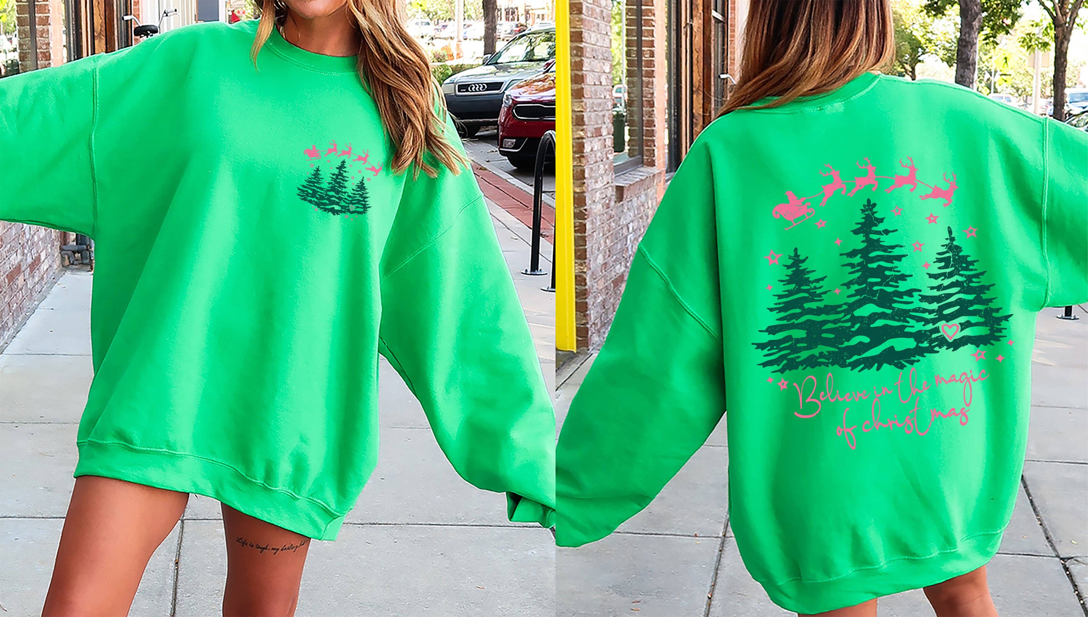 All of our sweatshirts are made using state-of-the-art, water-based, direct-to-film inks.