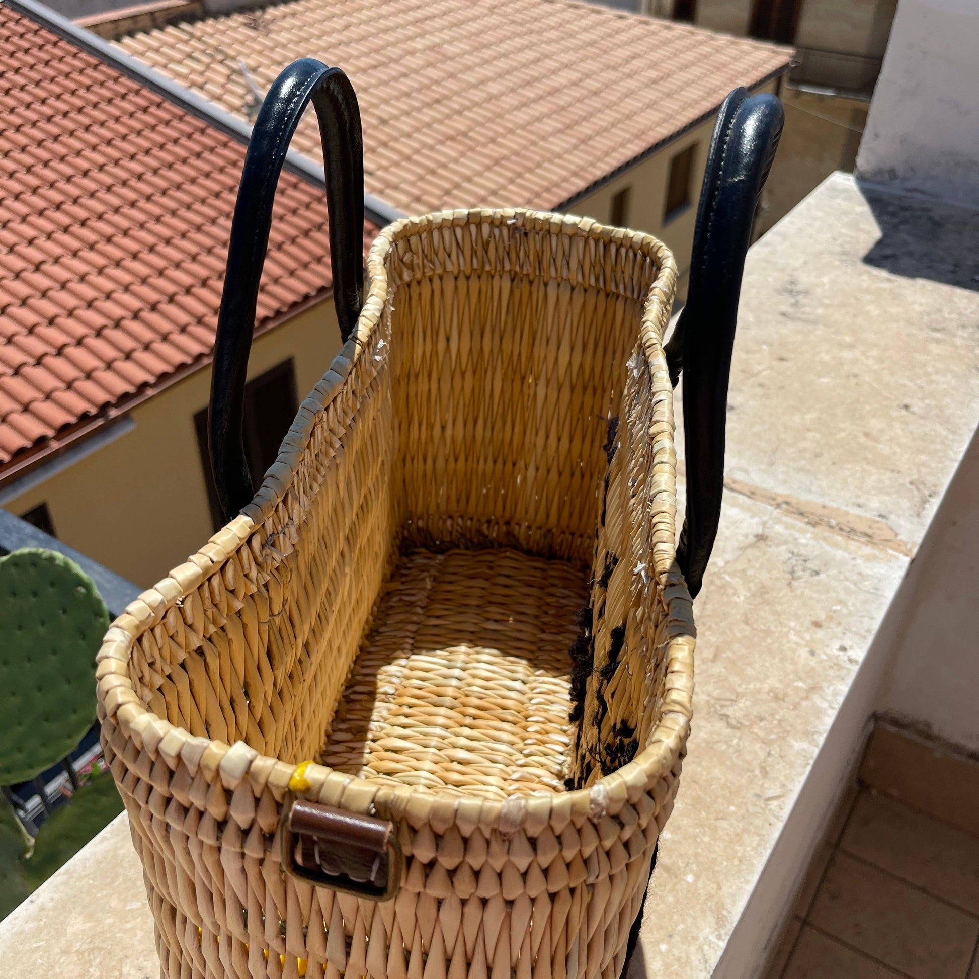 Handmade in Morocco with fine reed. Handles hand-sewn with leather.