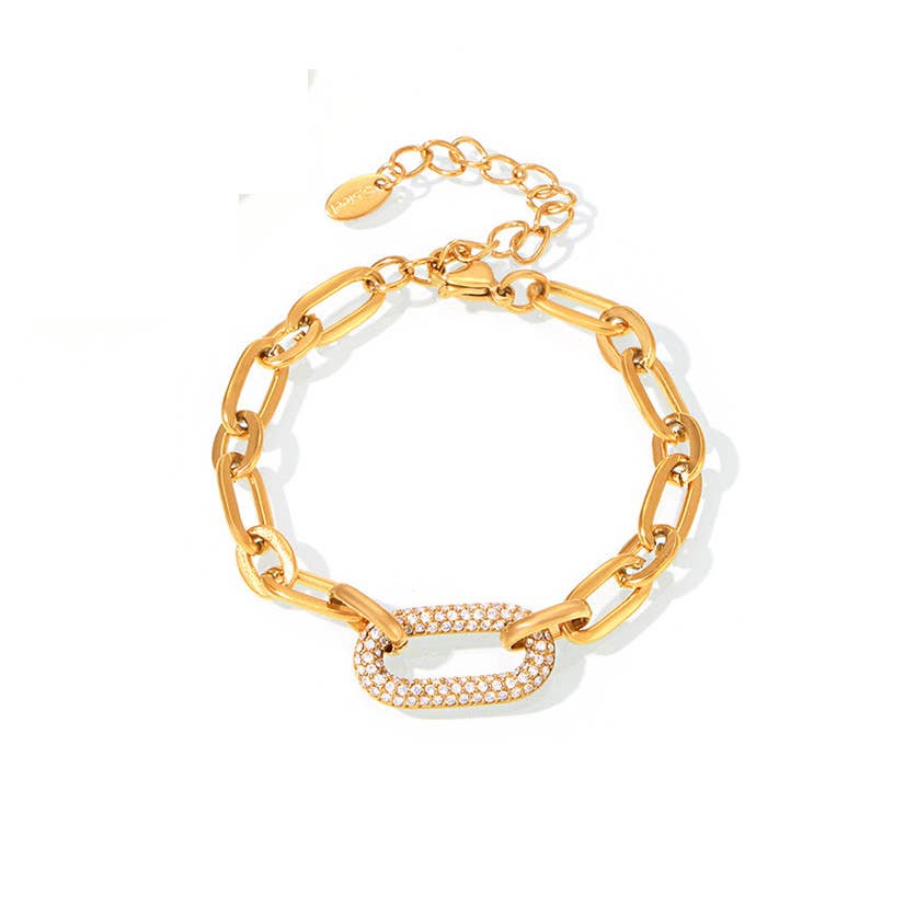 CZ Pave Oval Paper Clip Bracelet: Bracelet