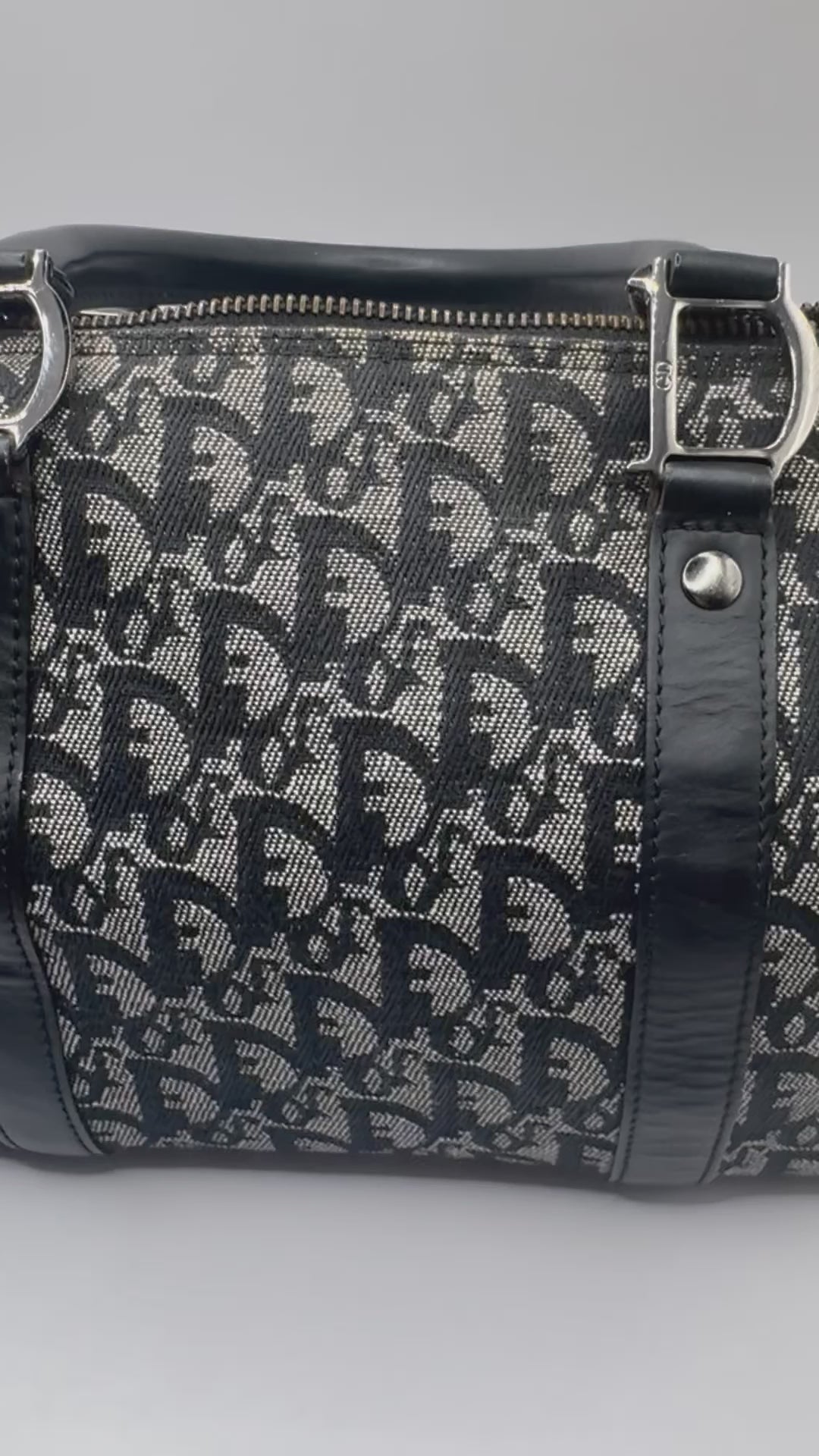 Dior 2004 Vintage Diorissimo Small Trotter Bag Black & Grey Dior print