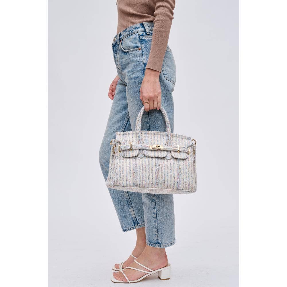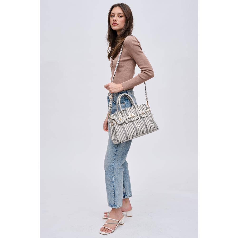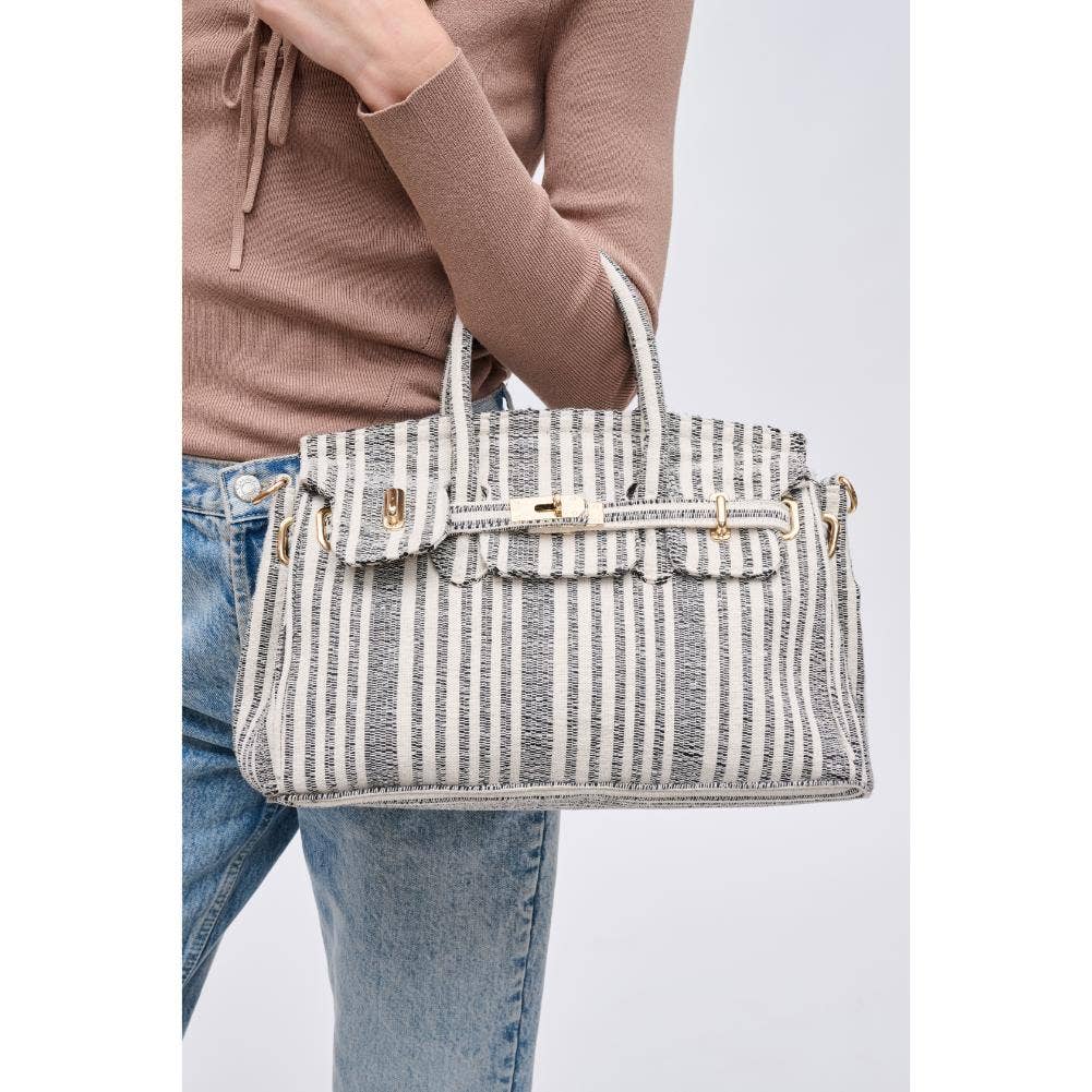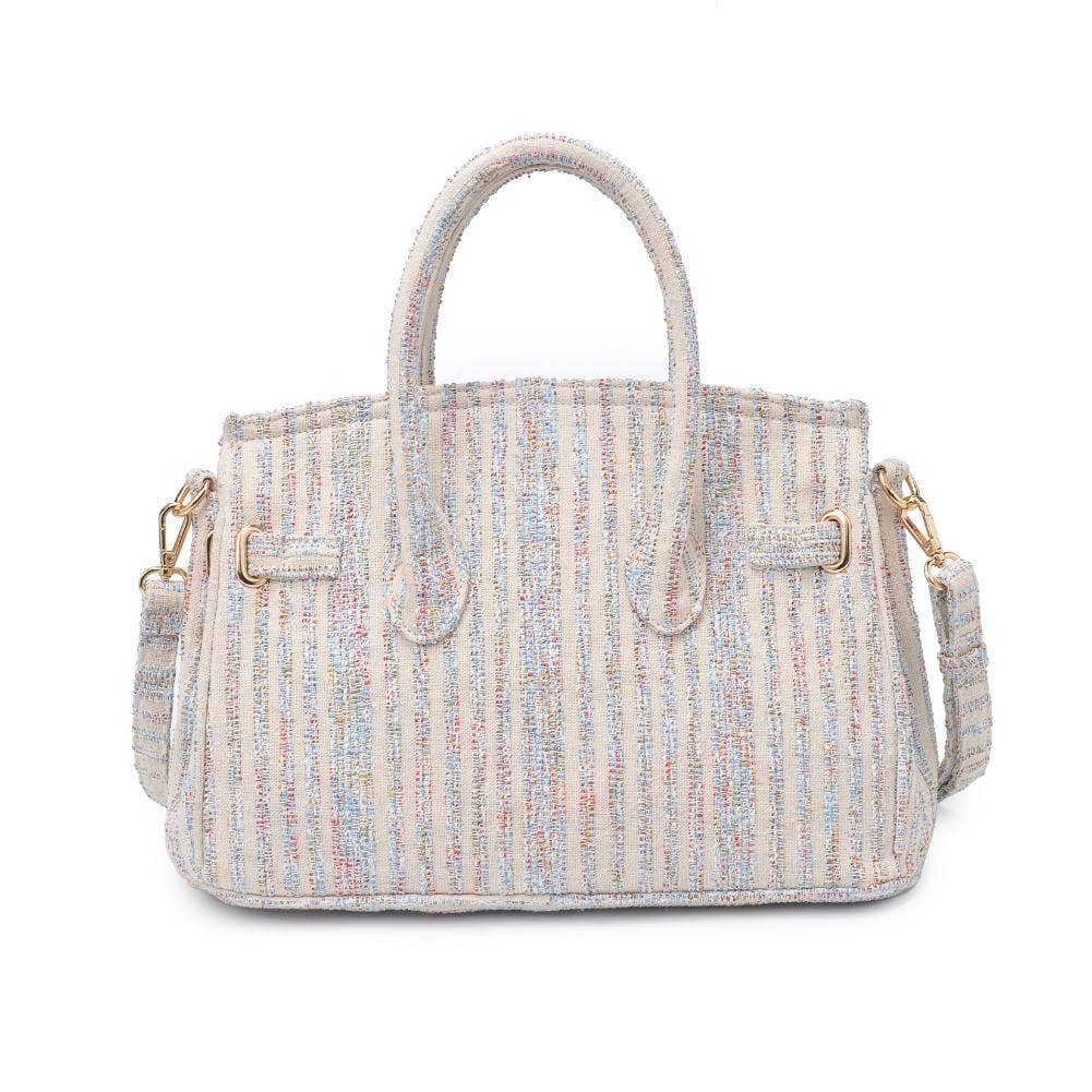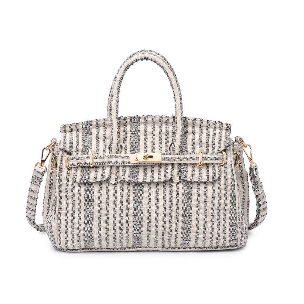 Blossom into style with our printed fabric satchel featuring gold hardware and a versatile top handle. The turn-lock closure adds a touch of sophistication, and the adjustable shoulder strap offers convenience on the move. Organize your essentials effortlessly with the fabric-lined interior and multiple pockets. Elevate your fashion game with this chic and practical satchel!