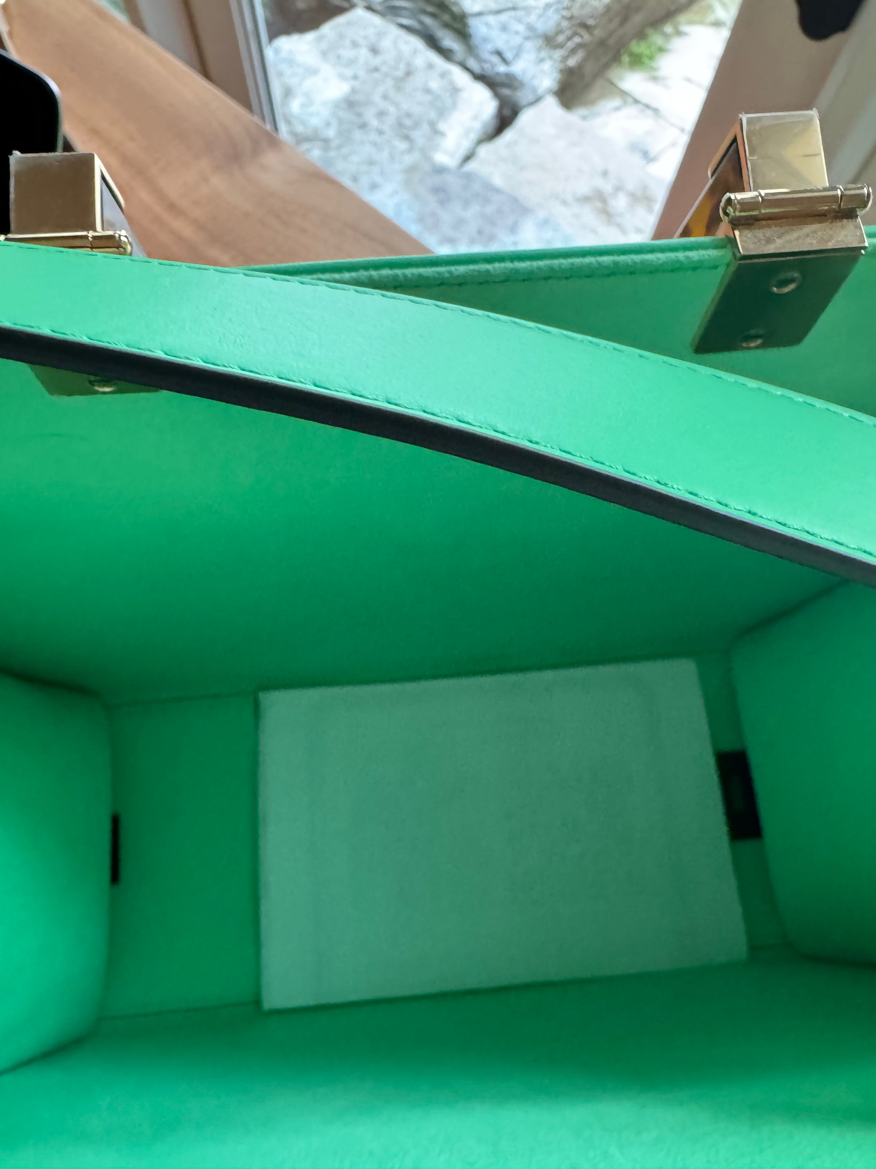 Elevate your ensemble with the FENDI Sunshine Medium Embossed Leather Shopper Tote Bag in refreshing Green. This chic accessory combines luxurious embossed leather with FENDI's signature style, making it a statement piece for any fashion enthusiast. Series: Sunshine Medium Style: Shoulder/Tote Bag Material: Embossed Leather Color: Green Made: Italy Measurements: W 14" D 6.5" H 12" Accessories: Shoulder Strap.
