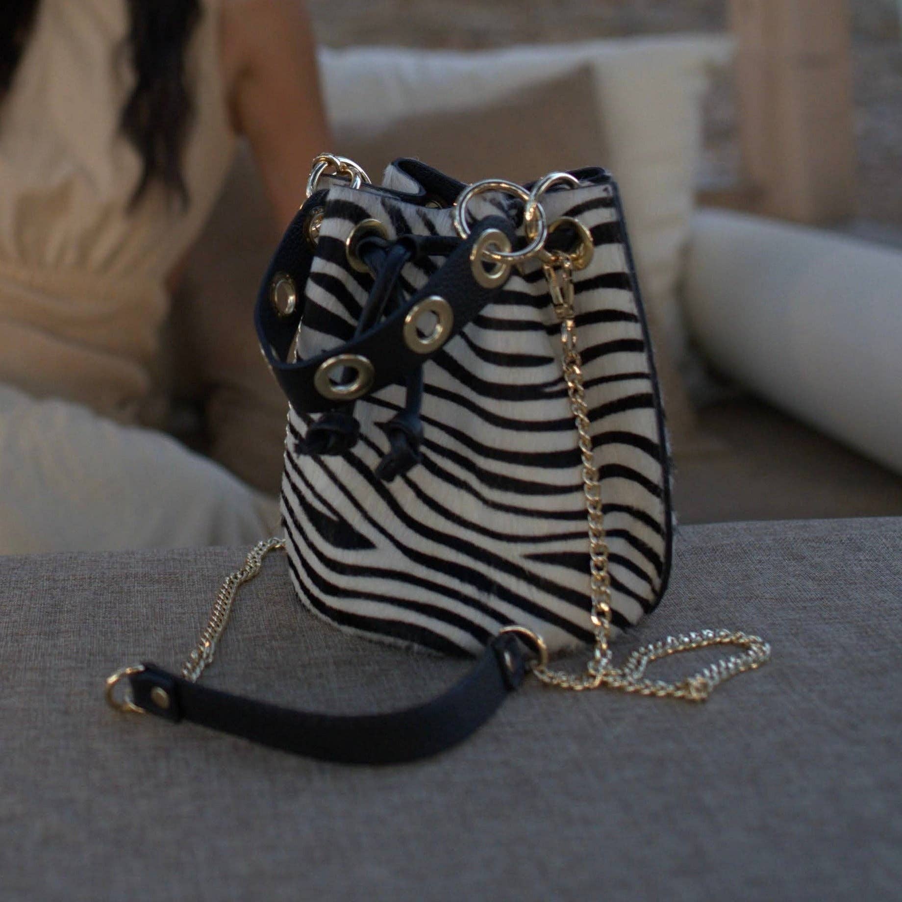 Introducing the Gabriella Zebra Pony Hair Bucket Bag, a stunning fusion of wild elegance and everyday functionality that beckons you to embrace your inner adventurer. With its luxurious textures and eye-catching zebra print, this bag is not just an accessory; it’s a statement piece that transforms any outfit into a celebration of bold individuality.