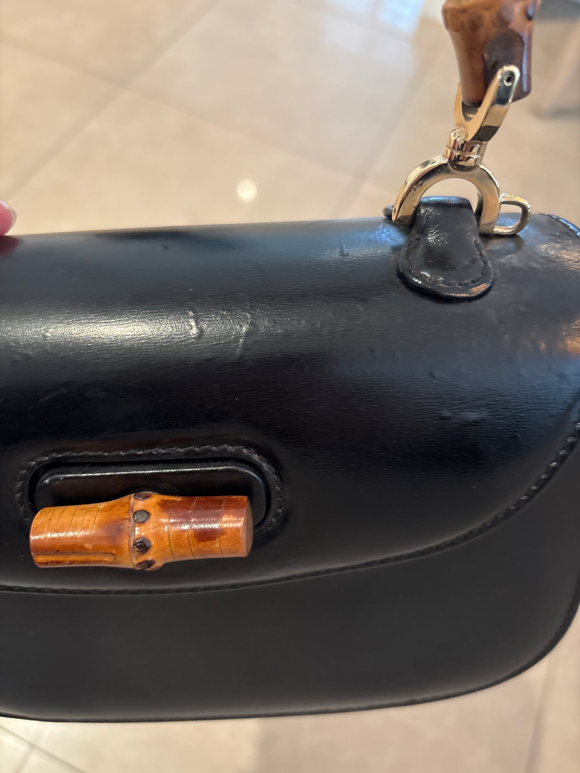 Gucci Vintage Bamboo Handle Box Calf Leather Bag – Black