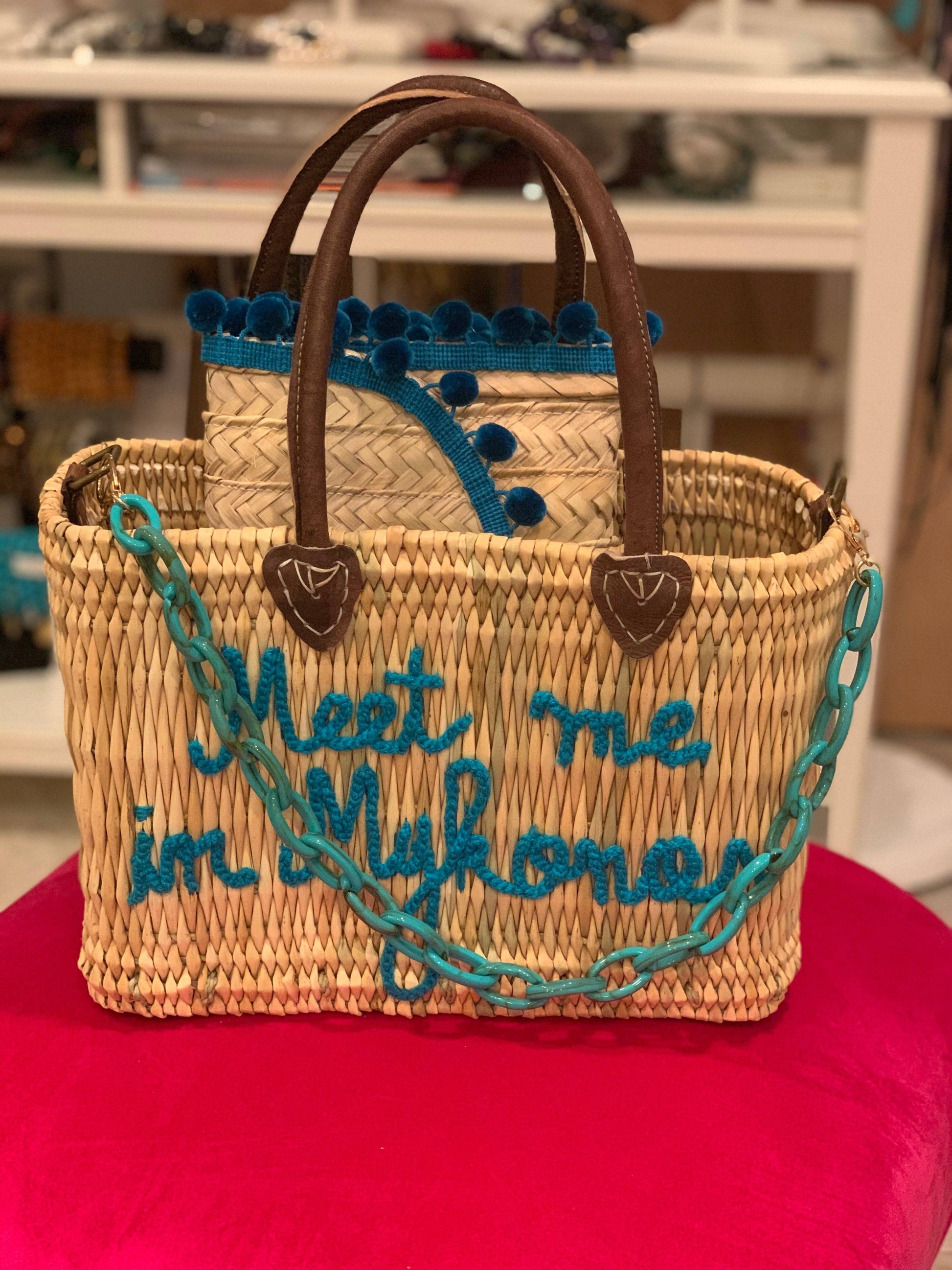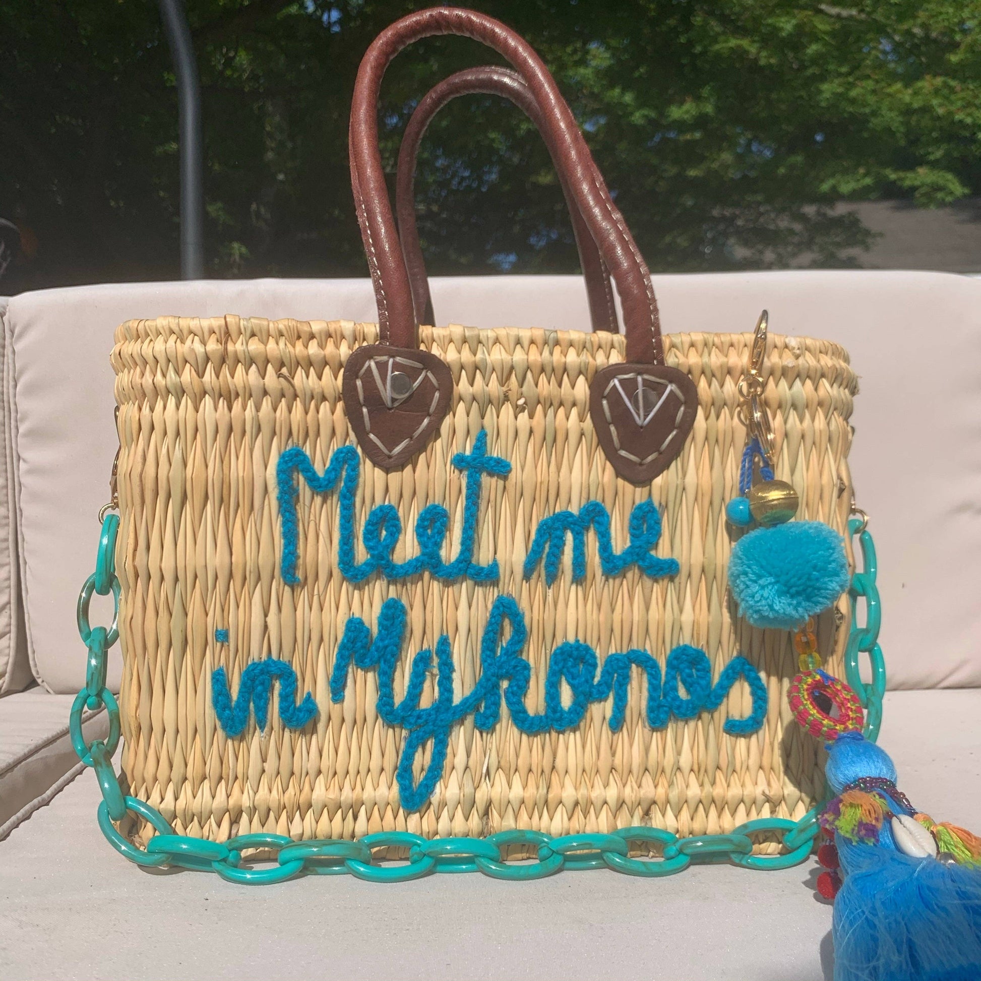 "Meet Me In Mykonos" Turquoise embroidery