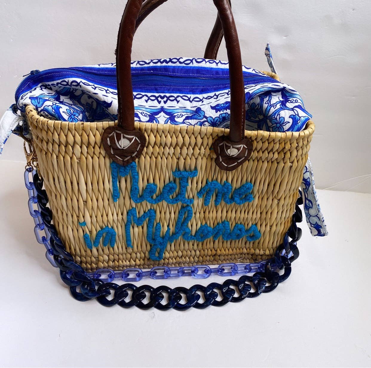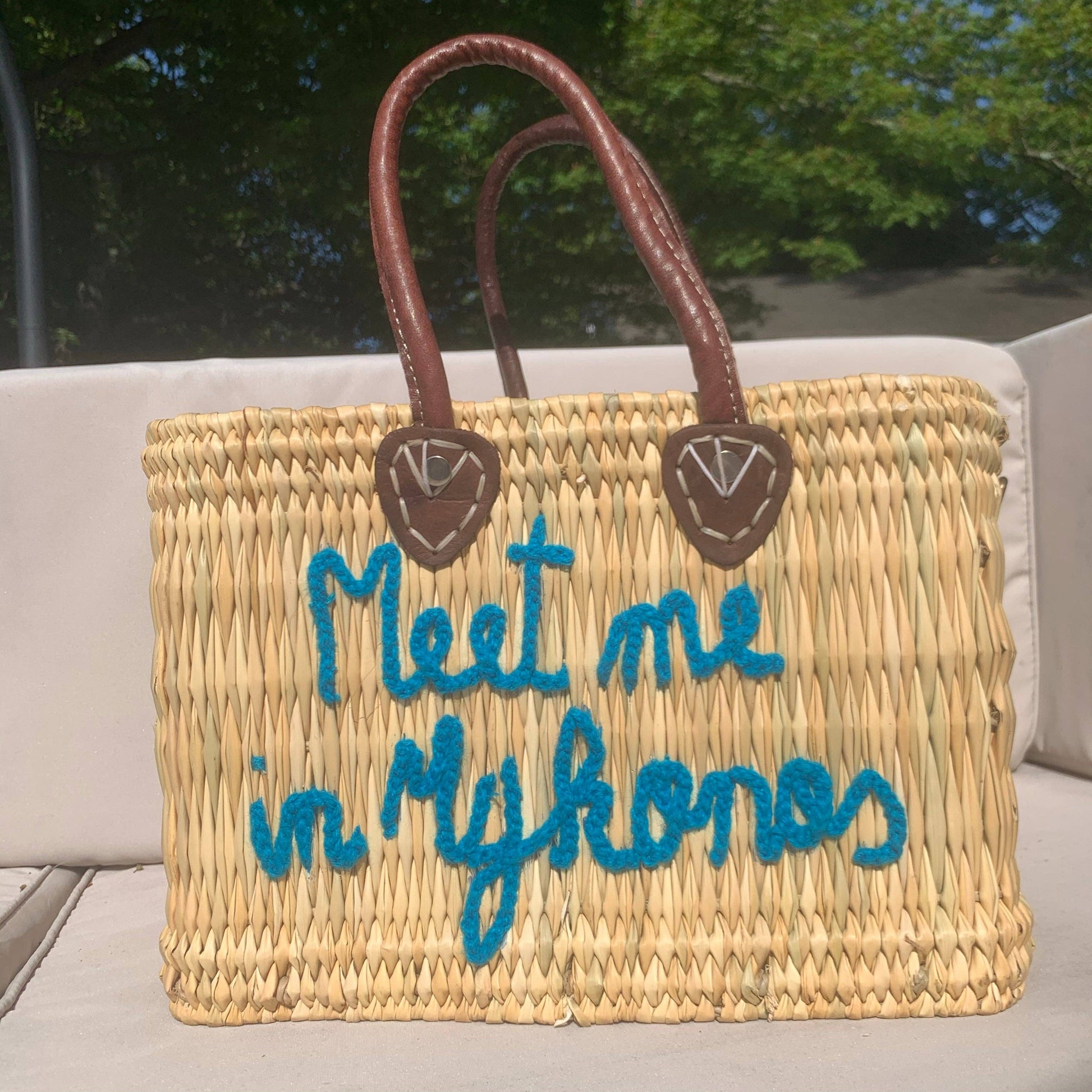 Lilliana Meet Me In Mykonos Leather Handle Reed Bag