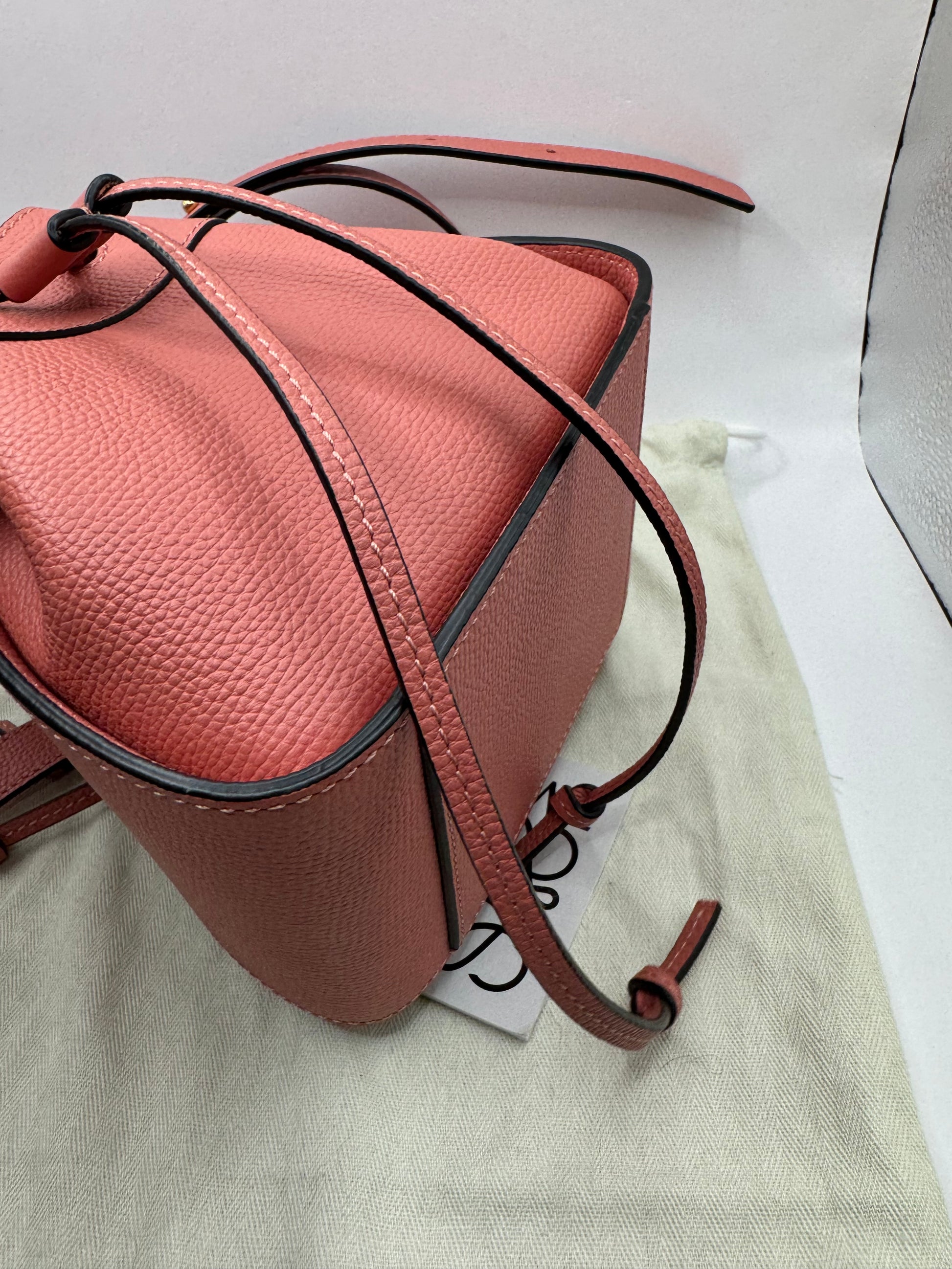 A multifunctional bag with supple drawstring side panels that release to change its shape. Looped straps allow the bag tobe worn in multiple ways. This mini version is crafted in soft grained calfskin.