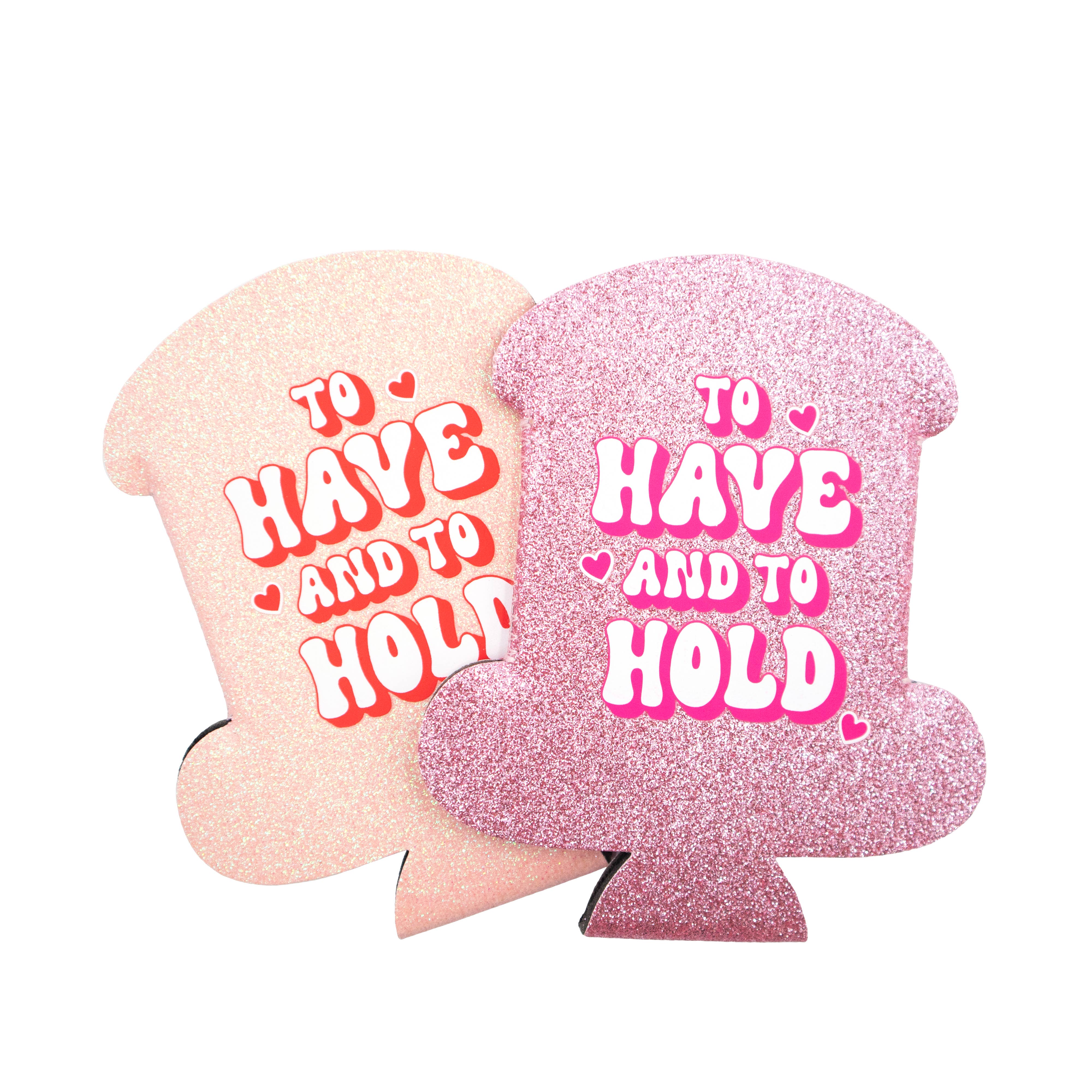 Glitter, Girth, and Grip: Our dazzling pink glitter neoprene can cooler isn't just another pretty face. It's playful shape promises to cling to your slim cans tightly. Perfect for those who appreciate a firm grasp wihtout the awkward condensation aftermath.
