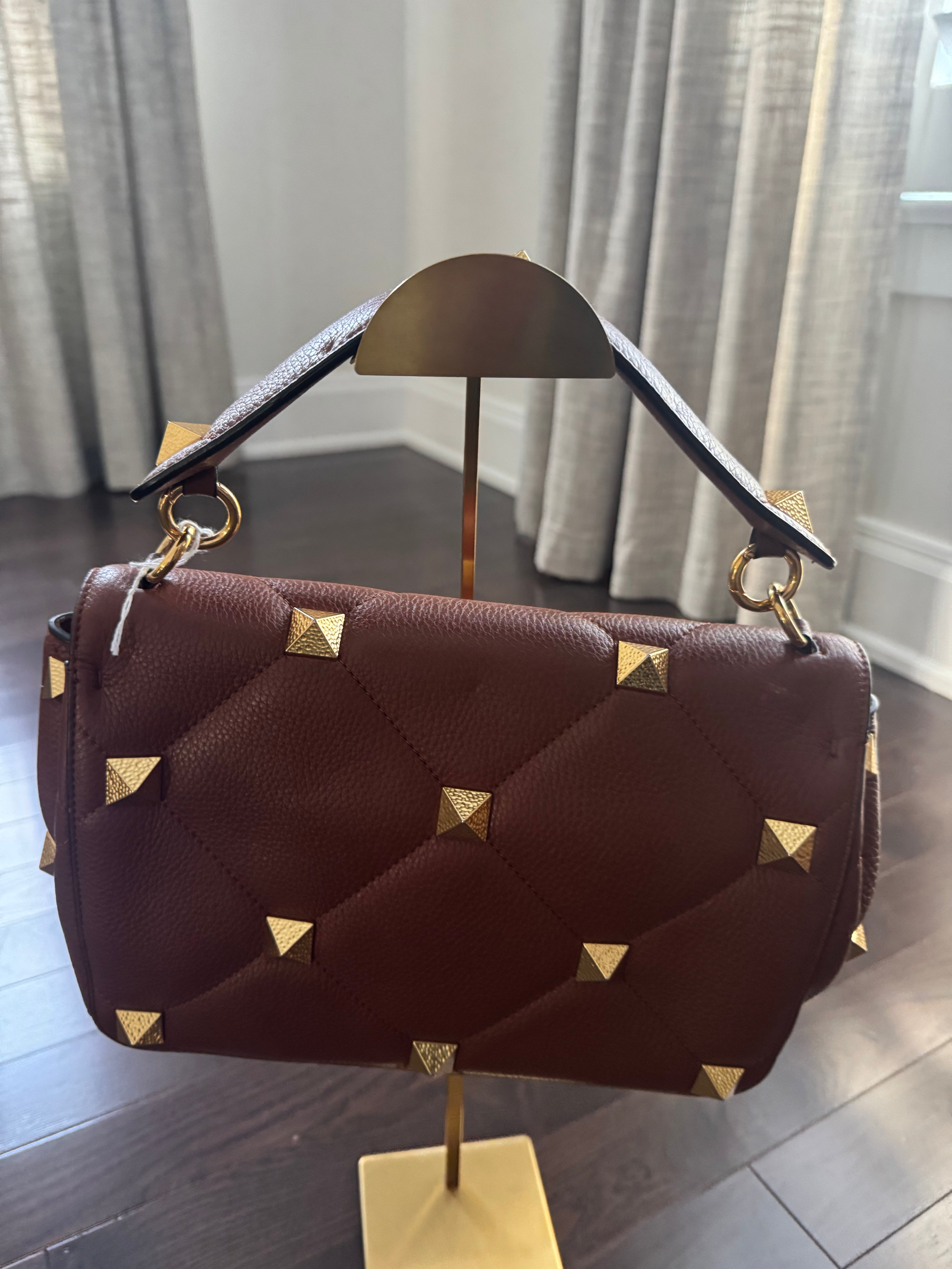 Valentino Garavani Roman Stud Shoulder Bag – Brown & Gold